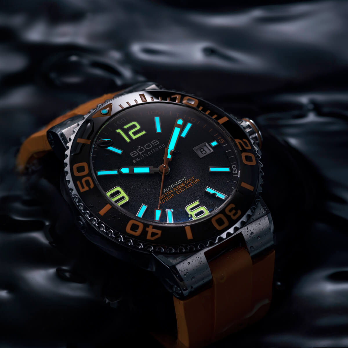| Case | Material Acero inoxidable / Bisel de cerámica Acero / Bisel negro 43 mm 14,5 mm 25 mm Zafiro curvado resistente a los arañazos Acero inoxidable 50 CAJEROS AUTOMÁTICOS |