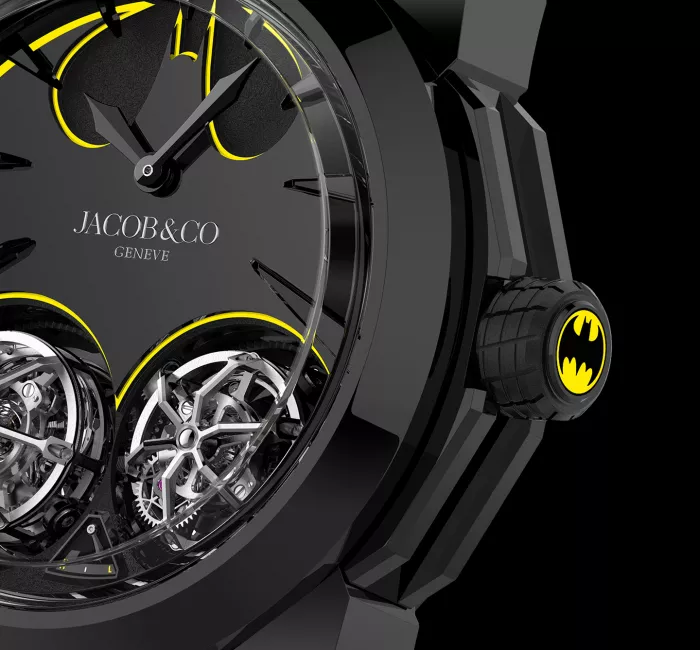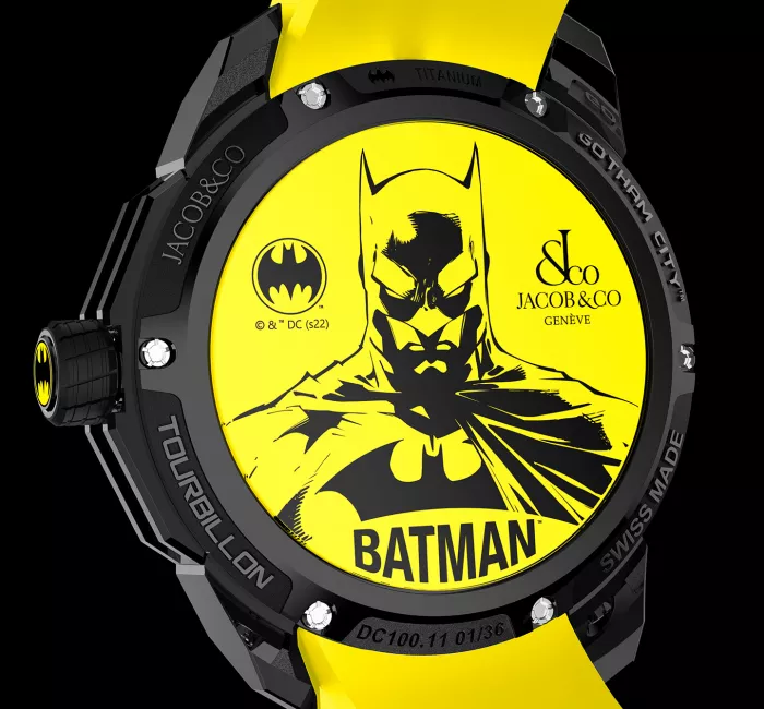 En 2022, Jacob & Co. s’associe avec le géant de la bande dessinée DC Comics pour concevoir un tout nouveau garde-temps. Gotham City est une montre sur le thème de Batman qui s’inspire des goûts et préférences personnels de Jacob Arabo. Il est un fan de Batman, tout comme Benjamin Arabov, le PDG de Jacob & Co. Ce garde-temps est le résultat d’une profonde implication individuelle et un symbole de ce que représente Batman. Dans l’esprit du créateur Bob Kane, la verticale et sombre Gotham City est un substitut de la ville de New York, d’où Jacob & Co. a été créé et opère.